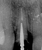 AVANT: Le tenon de l'ancienne couronne a fracturé la racine de l'incisive latérale