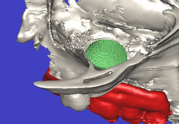 Une simulation implantaire permet d'évaluer un volume osseux à greffer. Ici, un sinus maxillaire.
