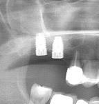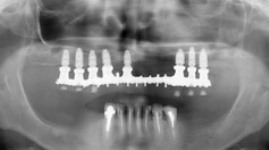 APRES : la greffe des deux sinus maxillaires a permis au patient de bénéficier d’une solution FIXE sur 8 implants.