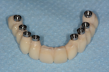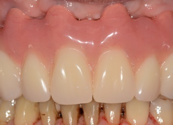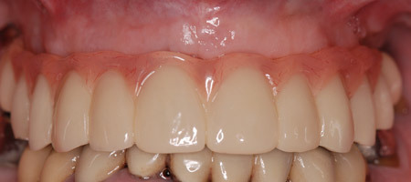- Cas 4: 1 bridge céramique a été scellé sur 6 implants antérieurs.