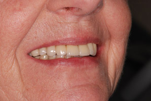 - Cas 1: 7 implants ont été placés grâce à un guide chirurgical et le bridge provisoire en résine a pu être placé 48 heures après la pose des implants. Le bridge d'usage en céramique a été placé 6 mois après la pose du bridge provisoire.