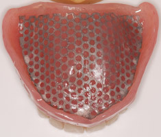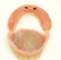 Les renforts métalliques dans la masse des prothèses minimisent le risque de fracture dans le temps et faciliteront les procédures de rebasage. Les caoutchoucs roses seront changés tous les 2 ans.