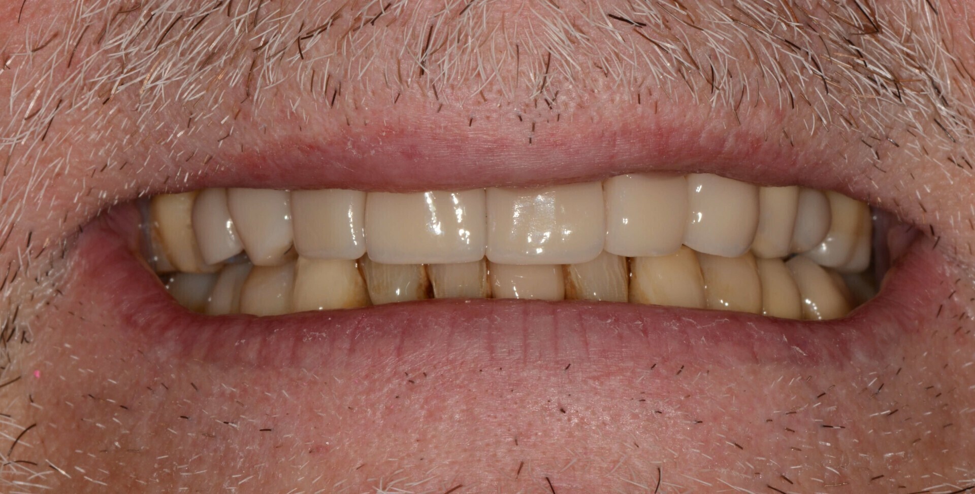 A l’issue de son traitement parodontal, le patient âgé de 60 ans souhaite modifier son sourire.